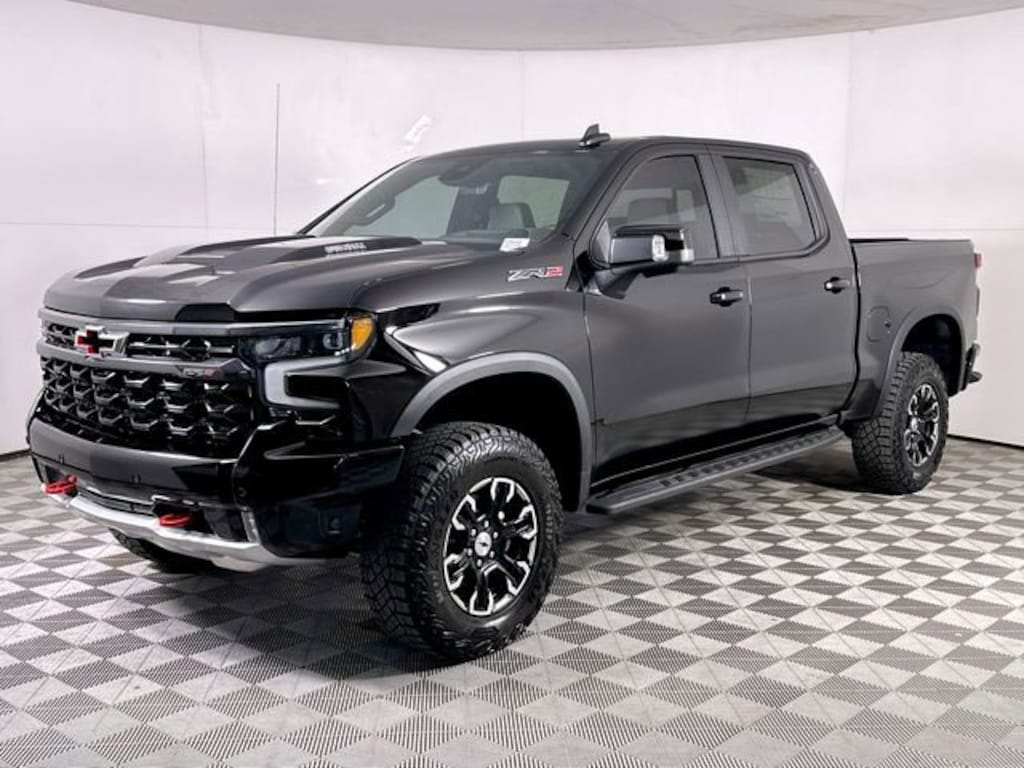 Features: , Preferred Equipment Group 3LT (10-Way Power Driver Seat with Lumbar, 10-Way Power Passenger Seat Adjuster with Lumbar, 12.3 Multicolor Reconfigurable Digital Display, 120-Volt Bed Mounted Power Outlet, 120-Volt Interior Power Outlet, 2 USB Data Ports, 2nd Row Heated Outboard Seats, All-Weather Floor Liner, Bed View Camera, Bluetooth® For Phone, Chevytec Spray-on Black Bedliner, Color-Keyed Carpeting Floor Covering, Deep-Tinted Glass, Driver Memory, Dual Rear USB Ports (charge Only), Electric Rear-Window Defogger, EZ Lift Power Lock and Release Tailgate, Floor Mounted Center Console, Front Bucket Seats, Front LED Fog Lamps, Front Rain-Sensing Wipers, HD Surround Vision, Heated Driver and Front Outboard Passenger Seats, Heated Steering Wheel, Heavy-Duty Air Filter, High Gloss Black Mirror Caps, Hill Descent Control, Hitch Guidance with Hitch View, in-Vehicle Trailering System App, Integrated Trailer Brake Controller, Keyless Open and Start, LED Cargo Area Lighting, Multi-Flex Tailgate, OnStar Services Capable, Outside Heated Power-Adjustable Mirrors, Perforated Leather Seat Trim, Performance Red Recovery Hooks, Perimeter Lighting, Power Front Passenger Windows with Express Up/Down, Power Front Windows with Driver Express Up/Down, Power Rear Windows with Express Down, Power Sliding Rear Window with Rear Defogger, Rear Cross Traffic Braking, Rear Pedestrian Alert, Rear Wheelhouse Liners, Remote Vehicle Starter System, Safety Alert Seat, SiriusXM with 360L Trial Subscription, Steering Wheel Audio Controls, Teen Driver, Theft Deterrent System (unauthorized Entry), Tire Pressure Monitoring System, Trailer Camera Provisions, Trailer Side Blind Zone Alert, Ultrasonic Front and Rear Park Assist, Universal Home Remote, Ventilated Driver and Front Passenger Seats, Wheels: 18 x 8.5 Aluminum Machined Face, Wi-Fi Hot Spot Capable, and Wrapped Steering Wheel), Technology Package (15 Diagonal Multicolor Head-Up Display, Adaptive Cruise Control, Power Tilt and Telescoping Steering Column, and Rear Camera Mirror), Trailering Package (Hitch Guidance), Up-Level Rear Seat with Storage Package, ZR2 Suspension Package, 10-Speed Automatic, 4WD, Jet Black/Graystone Leather, 220 Amp Alternator, 3.23 Rear Axle Ratio, 4-Wheel Disc Brakes, 7 Speakers, 850 Cold-Cranking Amps Heavy-Duty Battery, ABS brakes, Air Conditioning, Alloy wheels, AM/FM radio: SiriusXM with 360L, Apple CarPlay/Android Auto, Auto High-beam Headlights, Auto-dimming door mirrors, Auto-dimming Rear-View mirror, Automatic Emergency Braking, Automatic temperature control, Block heater, Brake assist, Compass, Delay-off headlights, Driver door bin, Driver vanity mirror, Dual Exhaust, Dual front impact airbags, Dual front side impact airbags, Electronic Stability Control, Electronic Transmission Range Selector Shifter, Emergency communication system: OnStar, Engine Block Heater, Following Distance Indicator, Forward Collision Alert, Front anti-roll bar, Front Center Armrest, Front dual zone A/C, Front fog lights, Front License Plate Kit, Front Pedestrian Braking, Front reading lights, Front wheel independent suspension, Fully automatic headlights, Garage door transmitter, Heads-Up Display, Heated door mirrors, Heated front seats, Heated rear seats, Heated steering wheel, Illuminated entry, IntelliBeam Automatic High Beam on/Off, Lane Keep Assist with Lane Departure Warning, Low tire pressure warning, Memory seat, Occupant sensing airbag, Off-R